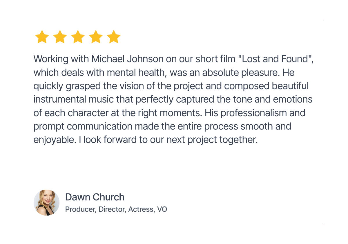 Look, music isn’t just what I do — it’s who I am. I create scores that elevate filmmakers’ visions, and I won’t let you settle for less than perfect. To make that happen, we need to be a good fit.